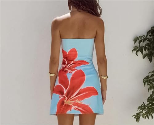 More information about Women Sexy Strapless Floral Pattern Bodycon Tube Mini Dress Summer Skinny Sleeveless Backless Bandeau Tube Dress