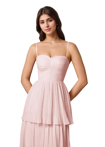 • Features: Elegant spaghetti strap chiffon tiered prom dresses for women pleated formal dresses for women, a line, long, pleated, sleeveless, spaghetti strap, ruffle, ball gown, zipper back, sexy, floor length, fashion, plus size, built in bra.