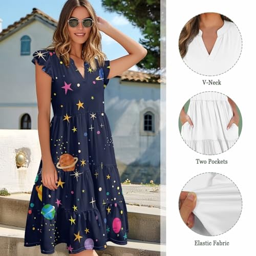 Womens Summer Dress Ruffle Sleeve V Neck Dress Casual Fit Flowy Beach Vacation Sundress with Pocket S-2XL 5