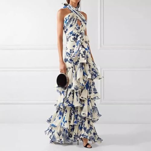 Women's 2025 Summer Crossover Halter Bohemian Print Dress Holiday Style Cross Strap Halter Neck Backless Dres 2