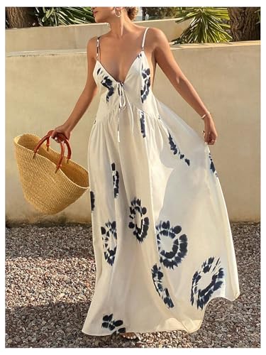 • Design: Flower pattern, tie knot, sleeveless, deep v neck, low cut, spaghetti strap, a line, flowy, long dress, open back dress for women