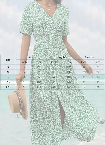 More information about Women's Summer V-Neck Boho Floral Print Midi Dress Button Up Slim Beach Vacation Casual Midi Dress