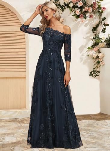 • Features: One shoulder tulle mother of the bride dresses for women, a line long ruched lace appliqued grandmother of the bride dresses with 3/4 sleeves, beaded empire waist mother of groom dresses for wedding 2025, full lined, built in bra, zipper closure.