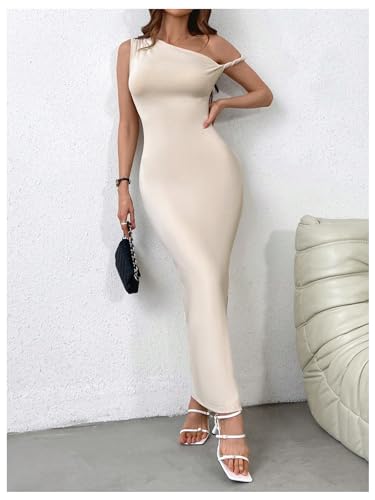 HOT ! GORGLITTER Women's Asymmetrical Bodycon Maxi Long Dress One Shoulder Sleeveless Ruched Graduation Going Out Dresses