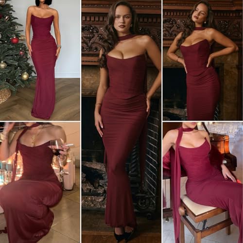 • MODERN DESIGN:Embrace the party with this elegant mermaid dress.The ruched bodycon designed can hide belly fat make you look slimmer,the waist pleats not only create a layered effect but also provide a slimming silhouette, making it ideal for women who want to accentuate their curves with a touch of elegance