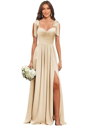 • FEATURE:Bow straps chiffon bridesmaid dress, a-line ruffle bridesmaid dresses with Slit,long a-line pleated wedding guest dresses for women,elegant formal evening party dresses, floor length formal dress for birthday party.Plus size,built-in bra,lace up back.