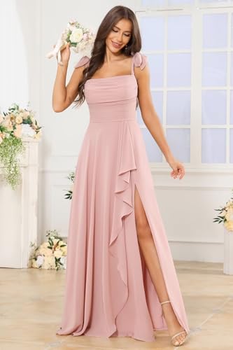 • Features: This bridesmaid dress has square neck, pleated ruffles,lace up back and bow straps. You will receive many compliments on this formal dress