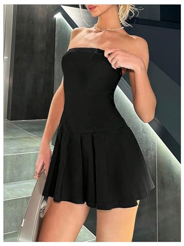 More information about SOLY HUX Women's Pleated Tube Dress Strapless Sleeveless A Line Mini Dresses