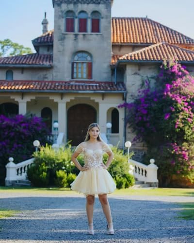 Mouccy 3D Flower Short Homecoming Dresses for Teens Pearly Lace Appliques DAMA Dress for Quinceanera Tulle A-line Prom Gown 4