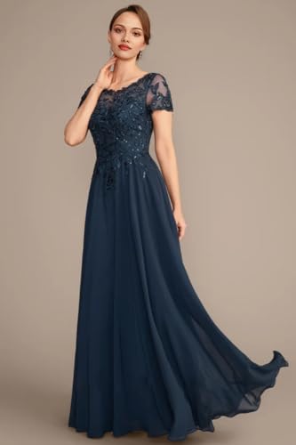More information about Lace Applique Mother of The Bride Dresses for Women Sparkly Sequin Maxi Formal Dress Short Sleeve Wedding Guest Dresses