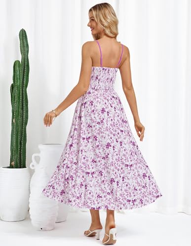 GRACE KARIN Women's 2025 Summer Casual Floral Boho Dress Spaghetti Strap Flowy Beach Maxi Dresses 4