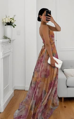 More information about Women's Floral Print Tulle Prom Dresses Spaghetti Straps V Neck Formal Party Gown A Line Bridesmaid Dress