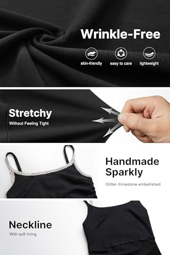 • Premium material: made of soft, skin-friendly and breathable fabric, gives you affordable Luxury feel. Sparkling rhinestone neckline with soft lining, stretchy and smooth, gentle on skin; Free wrinkle, no ironing needed, ready to wear