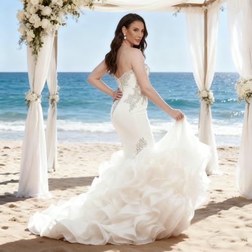 Mermaid Wedding Dresses Sweetheart Luxury Beaded Rhinestones Bridal Wedding Gown with Ruffle Cathedral Train 6