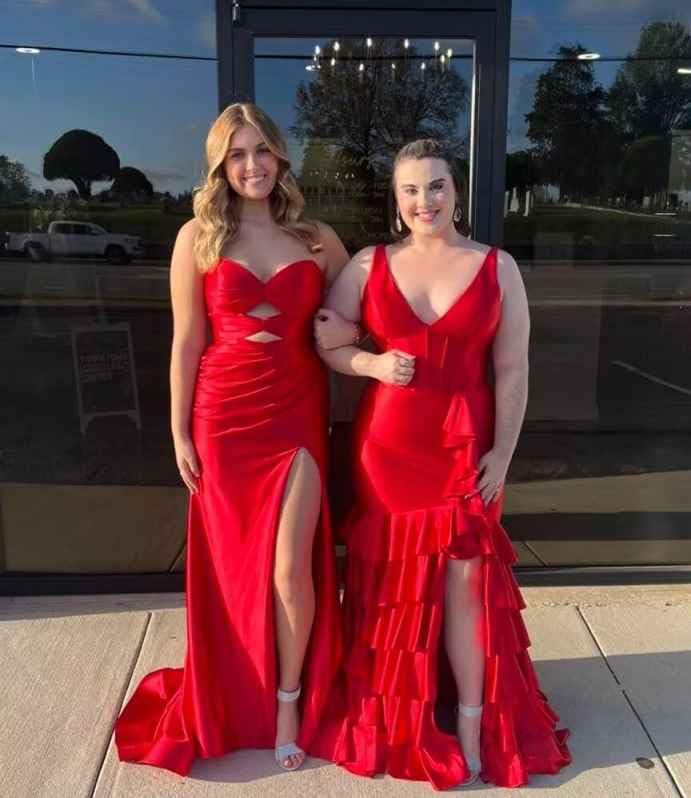 HOT ! Mermaid Prom Dresses for Women Tiered Formal Dress with Slit Satin Evening Gowns