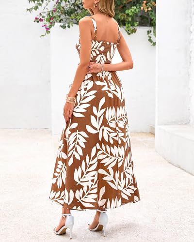 HOT ! PRETTYGARDEN Womens Summer Dresses 2025 Casual Spaghetti Strap Ruffle Smocked Flowy Floral Print Maxi Dress with Pockets