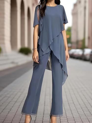 • Features: Flowy 2 pieces chiffon mother of the bride pantsuits for wedding,fluffy sleeves mother of the groom pants suits,2 pieces grandmother of the bride pants suits,women's round neck formal evening dressy sets,asymmetric layers wedding guest chiffon pants suits,formal pantsuits for women evening party,loose stylish fits more shape body to wear,you will receive many compliments on this formal chiffon pantsuits