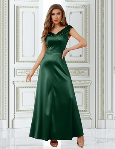 • Design - elegant bright satin dresses style,features peter pan v neck,empire waist a line dress,floor length,add retro1950s style fashion feeling that's quite popular with women,suitable for different ages and occasions.
