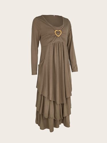 • UNIQUE DESIGN: Round neck, long sleeves, pleated dress, irregular hem, heart decoration on the chest, very textured. Long dress with flowing hem. Fits any body shape