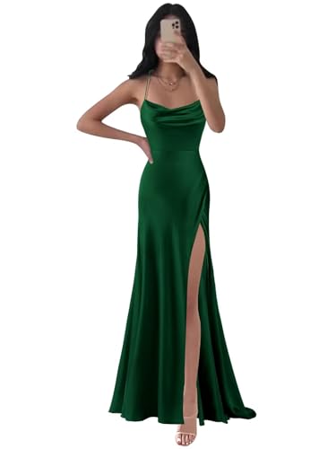 • Features:Spaghetti Strap,Cowl Neck,Silk Prom Dresses for Women Teens 2025, Satin Bridesmaid Dress,Long Evening Party Gown,Mermaid Pageant Dresses,Ruched Pleated Formal Dress with Slit,Open Back, Midi Dress, Maxi Gown