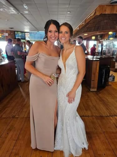 More information about yinyyinhs Off Shoulder Chiffon Bridesmaid Dresses for Women 2025 Long Ruched Cowl Neck Formal Evening Party Dress with Slit