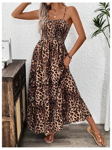 Floerns Women's Leopard Print Spaghetti Strap Maxi Dresses Vacation Cami Long Dress 6