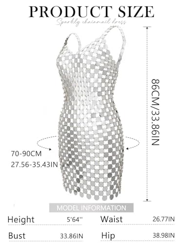 More information about GORAIS Sparkly Sequin Chainmail Dress Dots Dance Mini Dresses Nightclub Bikini Body Chain Dress for Women
