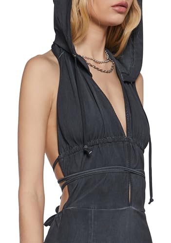 HOT ! Dolls Kill Chord Backless Hooded Dress by Darker WAVS – Edgy Open-Back Mini Dress with Adjustable Ties & Hood