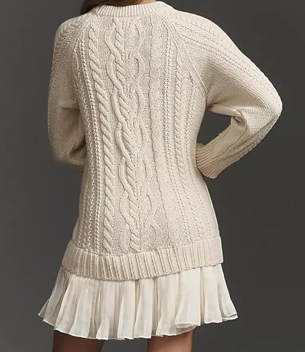 • 🍂【Cable Knit Sweater Dress Women】This chunky sweater mini dress features a cable knit sweater and pleated skirt. The classic crew neckline and chunky knit fabric create a comfortable, sophisticated, and modern silhouette.