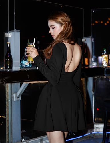 • Design:Women's party mini A-line dress, long sleeve, crew neck, solid color,elastic slim design perfectly fits every inch of your skin, backless show your beautiful body curves, so you can take every step with elegance and confidence, tailor-made for people who pursue unique beauty