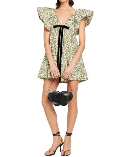 HOT ! hibshaby Women's Floral Print Mini Dress V Neck Puff Sleeve Dress Short Babydoll Bow Dress