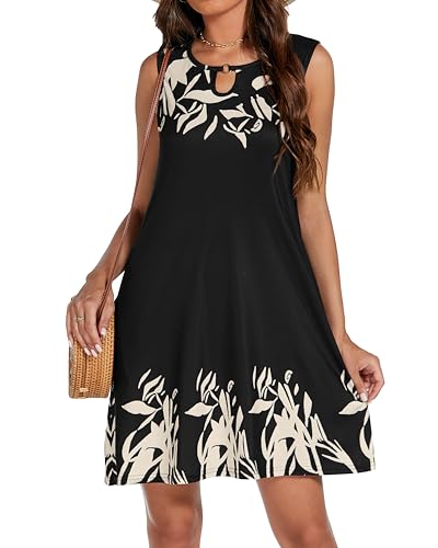 HOT ! Summer Dresses for Women Casual Sleeveless Sundress Floral Loose Fit Beach Cover Up with Pocket