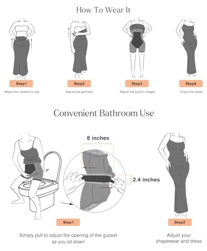 • 9 IN 1 SHAPEWEAR DRESS: Our bodycon dress has built-in shapewear for a flattering fit, non-restrictive butt design, breathable cotton crotch, low-crotch convenience, anti-chafing inner thighs for all-day comfort and style