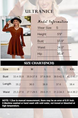 HOT ! ULTRANICE Women's Sweater Dress Fall Long Bell Sleeve V Neck Button Casual Flared Winter Dresses
