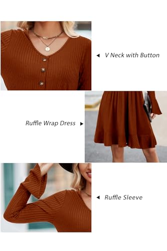 • Features: Fall sweater dress features a flattering v-neck design with elegantly flared sleeves and a graceful ruffled hemline for a sophisticated feminine look. Cute decorative buttons added a touch of style
