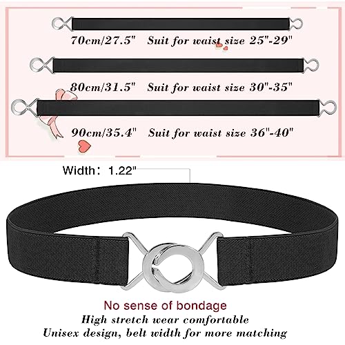 • Comfortable Material: The skinny waist belt set is made of high elastic band and metal buckle. The strip has good elasticity, so comfortable to wear and the stitching is neat and strong. The silver metal buckle is smooth and textured. It does not look cheap and makes a great addition to your outfit.