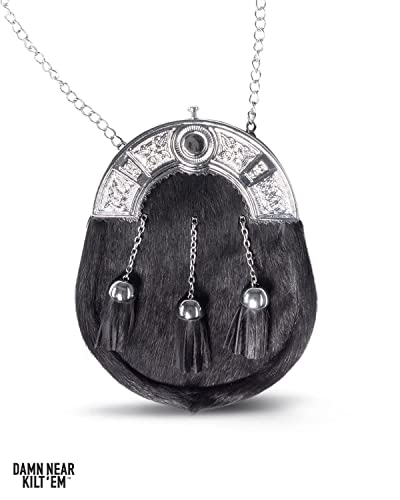 HOT ! Damn Near Kilt 'Em The King’s Scottish Formal Dress Sporran for Men, Made with Genuine Leather & Fur, Includes Chain Belt