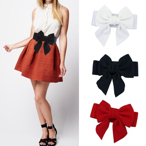 Red Bow Belt for Women Dresses Women's Bowknot Wide Elastic Band Belt Waistband Vintage Stretchy Belt Waist Decoration 3