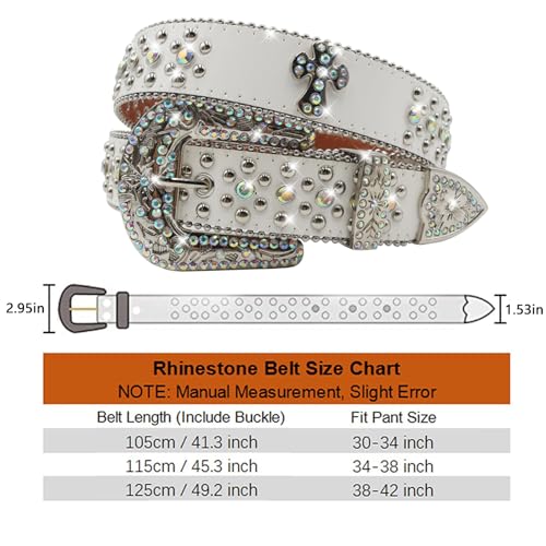 Rhinestones Cross Belt for Men Women Studded Belts Cowgirl Belts For Women Black/Silver/White Belt For Jean Pant 5