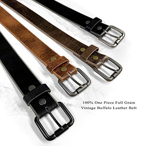 BS304-One piece Genuine Full Grain Vintage Leather Belt Strap with Snaps on or Belt with Roller Buckle_1-1/2"(38mm) wide 1