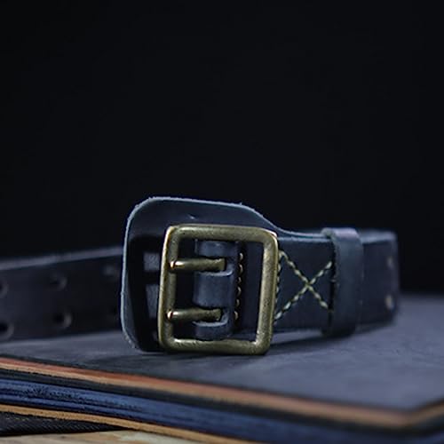 Men's Double Prong Work Belt Full Grain Leather Vintage Distressed | 50mm Wide | Heavy Duty | 2 Holes Jeans Waist Belt 5
