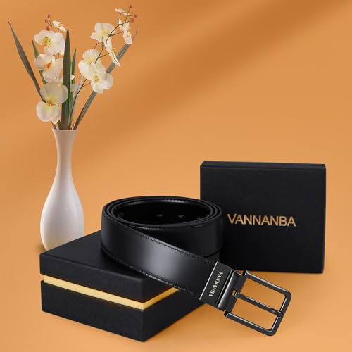 VANNANBA Men's Reversible Belt 100% Genuine Leather Dress Casual - 1 Belt 2 Styles for 2 Sides 1