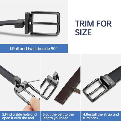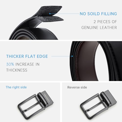 VANNANBA Men's Reversible Belt 100% Genuine Leather Dress Casual - 1 Belt 2 Styles for 2 Sides 3