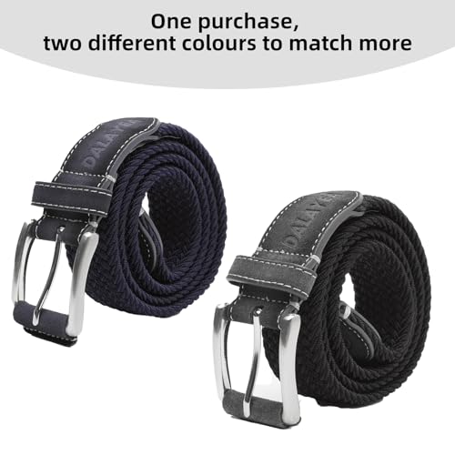 Stretch Braided Woven Belt for Men 2 Pack,Mens Gift Web Belt No Hole Elastic for Casual Golf Jeans 4