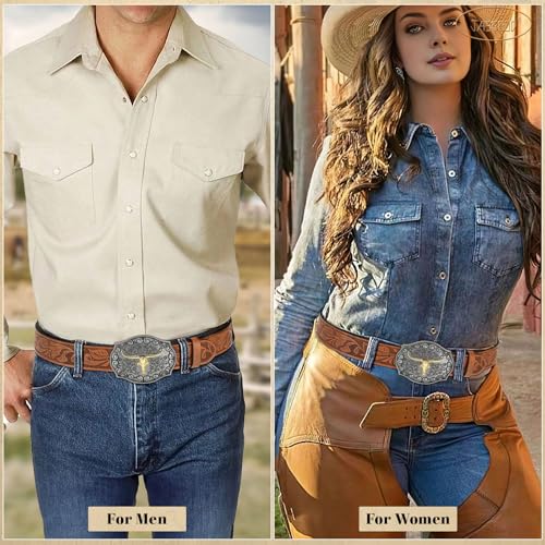 • Standout Buckle Design: Featuring a bold western silver buckle, this cowboy leather belt full of strength and style. The removable buckle allows you to easily swap out the buckle, offering unmatched versatility for matching various clothing styles, from casual wear to themed events.