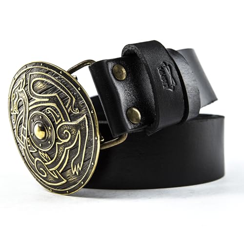 More information about Leather belt with belt buckle Viking Shield, Handmade scandinavian warrior shield solid brass belt buckle on leather belt