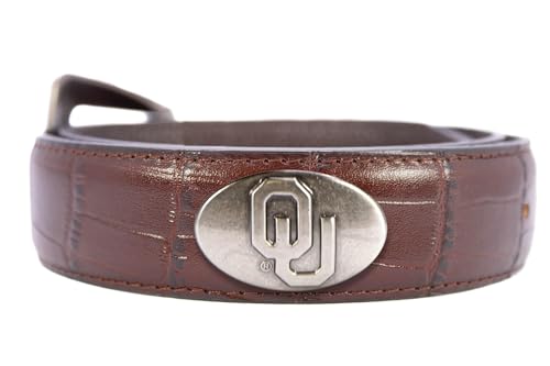 HOT ! ZEP-PRO NCAA Oklahoma Sooners Men's Croc Leather Belt – Embossed Full Grain Brown Strap With Emblem Conchos – 1.25" Wide Collegiate Accessory With Silver Tip, Size 34