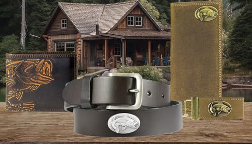 More information about ZEP-PRO Bass Men's Leather Belt – Brown Full Grain Pullup Strap With Fish Emblem – 1.25" Wide Handmade Accessory With Tapered Tip And Natural Finish, Size 32