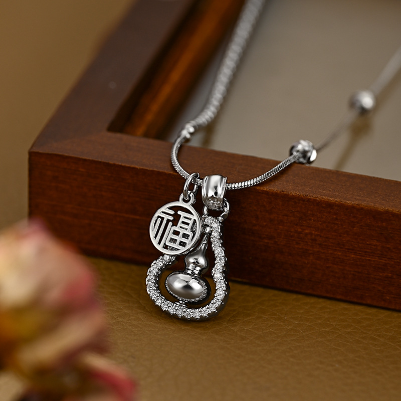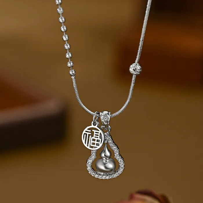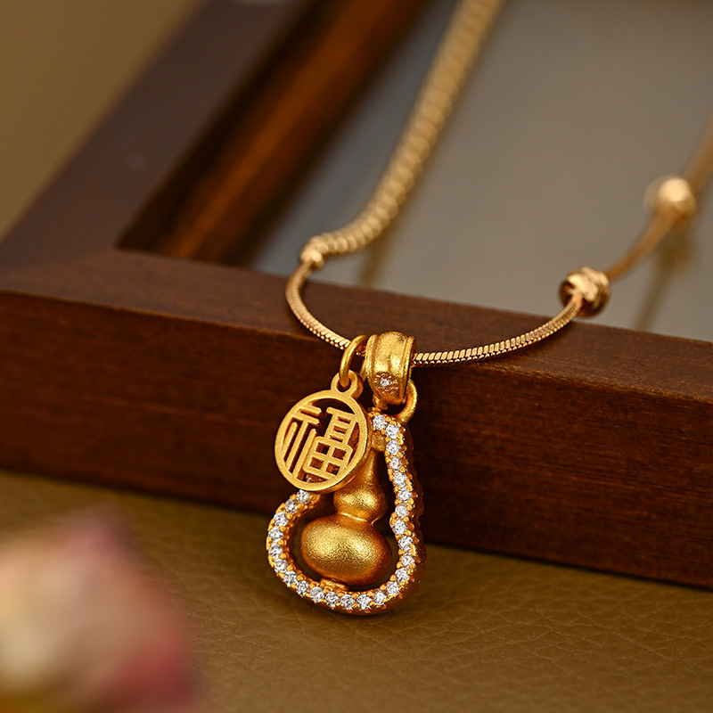 2025 New Style Real Gold Plated Micro-set Cubic Zirconia Elegant Collarbone Chain for Women, High-end Gourd Necklace, Versatile 4