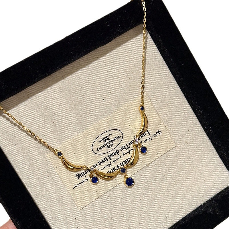 French - style Retro Sapphire Tassel Necklace in the Blue Drop - shaped Series with Ancient - style Fused Glass Craftwork Lace 1